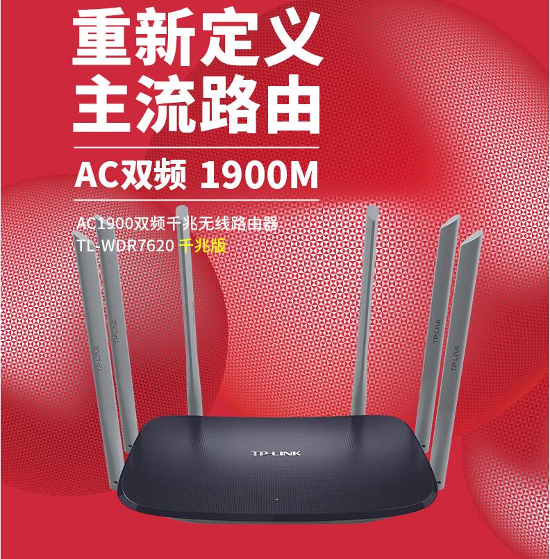 TP-LINK千兆無線路由器5G雙頻AC1900M普聯(lián)家用高速WIFI光纖大戶型穿墻電信移動寬帶TL-WDR7620