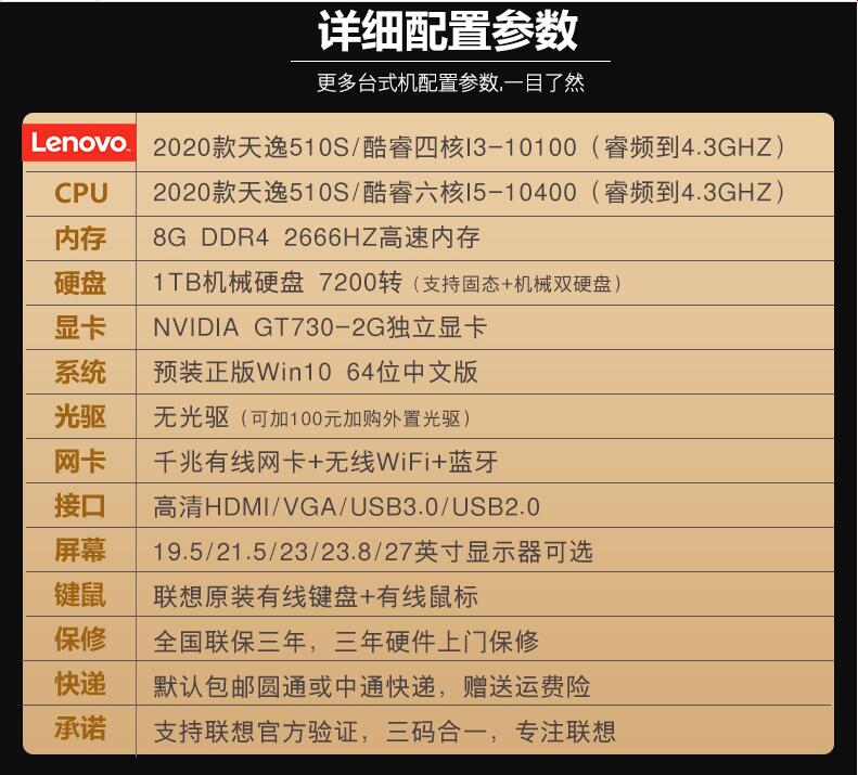 聯(lián)想臺式機(jī)電腦天逸510S/510PRO 十代六核I5-10400/四核I3 家用辦公商用財(cái)務(wù)炒股網(wǎng)課游戲設(shè)計(jì)全整套迷你主機(jī)