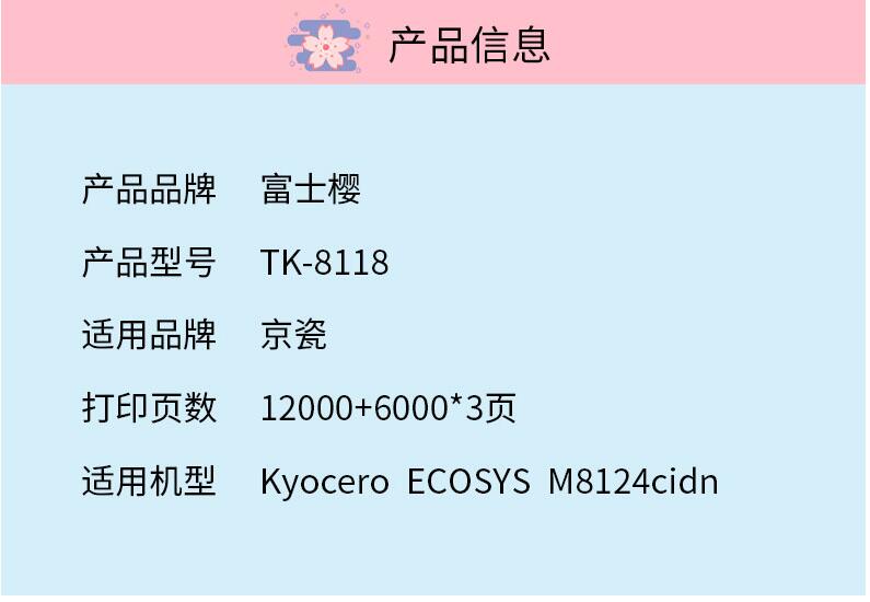 FC-tk8118通用耗材易加粉碳粉粉盒墨粉盒硒鼓富士櫻適用京瓷Kyocera M8124cidn打印機黑色黃色洋紅色青色