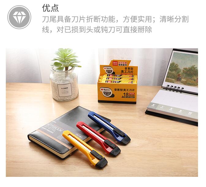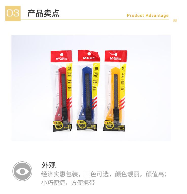 晨光美工刀 美工刀3把 大號壁紙刀小刀裁紙刀片快遞刀美工刀片工業(yè)用手動推鎖美術(shù)刀學生削筆刀