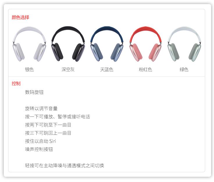 Apple/蘋果 AirPods Max 無線藍牙耳機 airpodsmax 頭戴式降噪